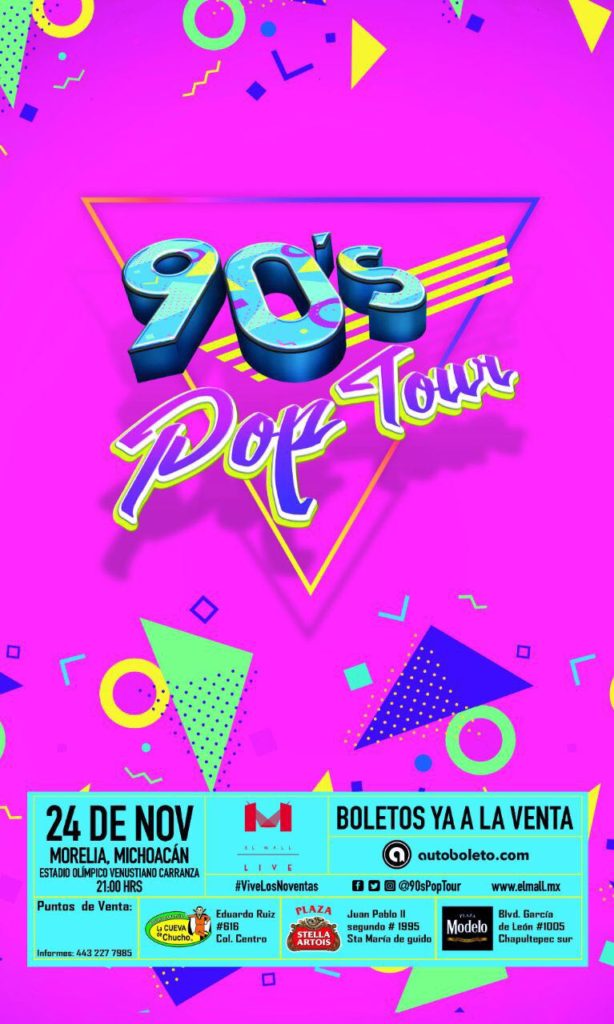Morelia, Michoacán.- El Mall Live informó que la preventa de boletos para el concierto de los 90s Pop Tour en Morelia concluirá el próximo 18 de septiembre.