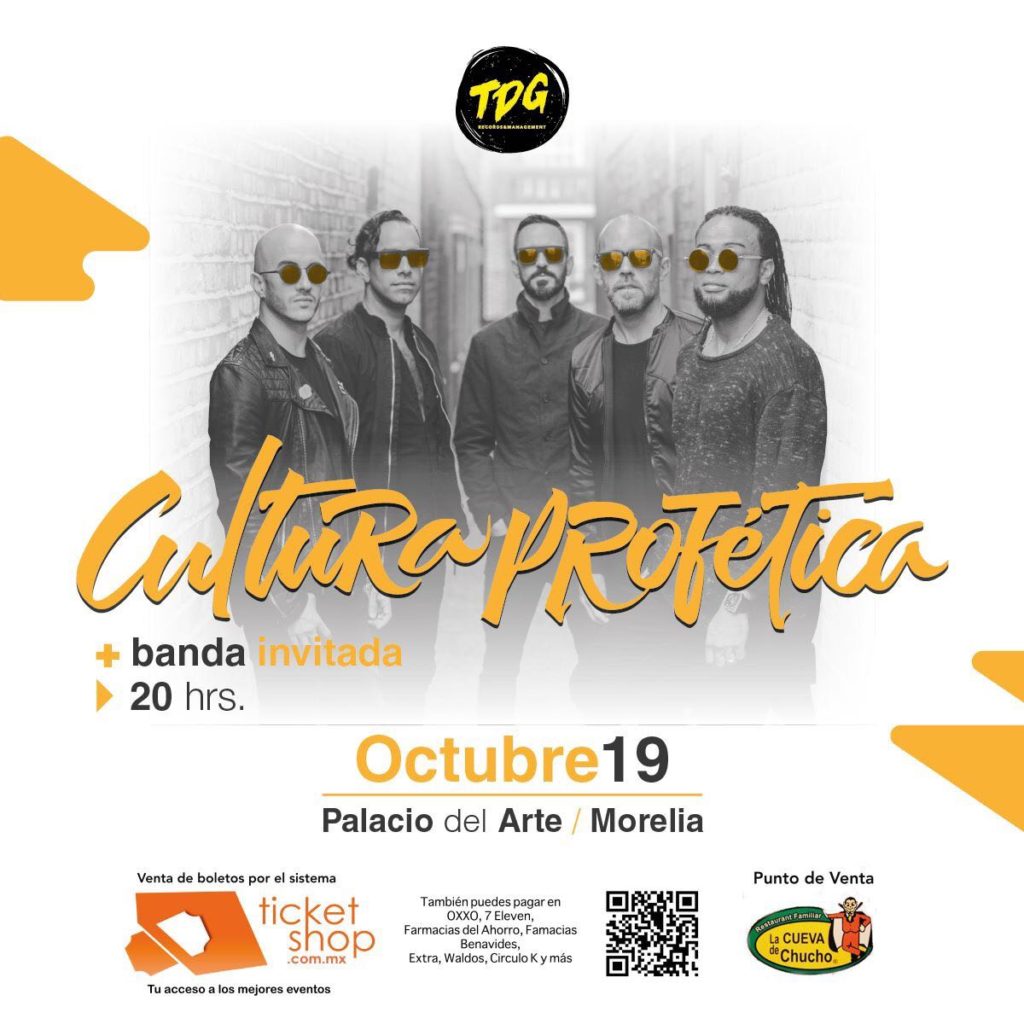 Morelia, Michoacán.- Este jueves 19 de octubre, Cultura Profética, una de las agrupaciones de reggae más reconocidas a nivel mundial, se presentará en el Palacio del Arte de Morelia a partir de las 21:00 horas.